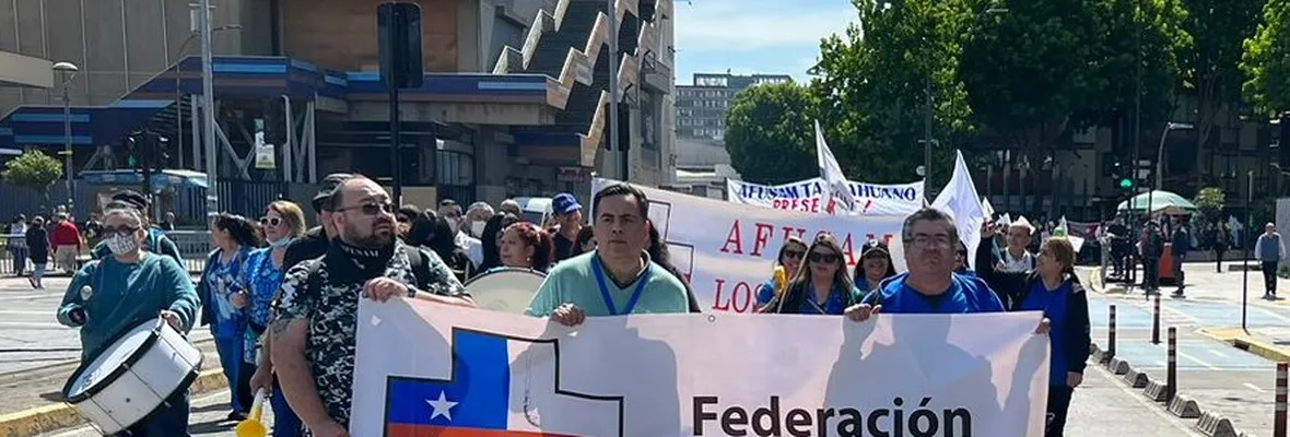 En el marco del paro nacional de advertencia al gobierno de Boric, programado para este martes por la Confederación de Funcionarios y Funcionarias de la Salud Municipal (Confusam), trabajadores y trabajadoras de la salud primaria marcharon por el centro de Concepción, en rechazo al paupérrimo aumento presupuestario para el próximo año.