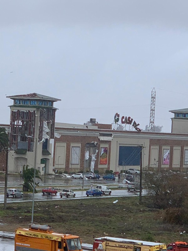 Los vecinos debieron ser evacuados por bomberos. El casino Marina del Sol resultó con daños, vehiculos destruidos y uno sumergido en una pileta. Mientras tanto, en el Mall del Trébol se desprendió parte de la techumbre.