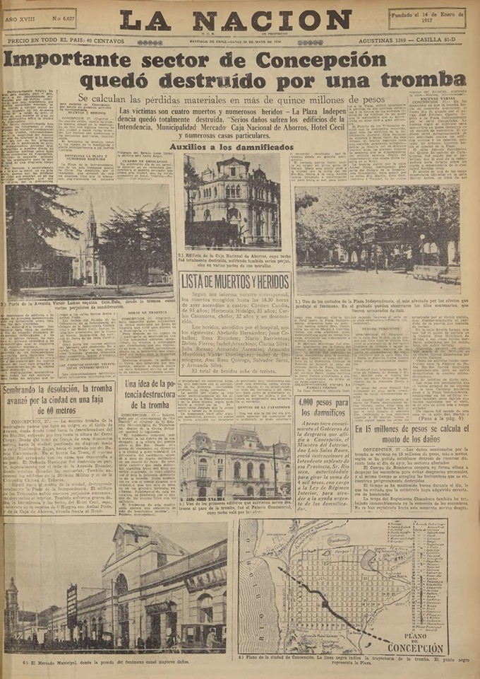 En 1934 una tromba marina también afectó a Concepción, entrando por el río Biobio, atravesando el centro de la ciudad con dirección hacia el valle Nonguén, dejando gran destrucción y víctimas fatales.
