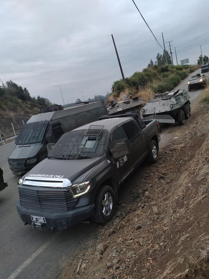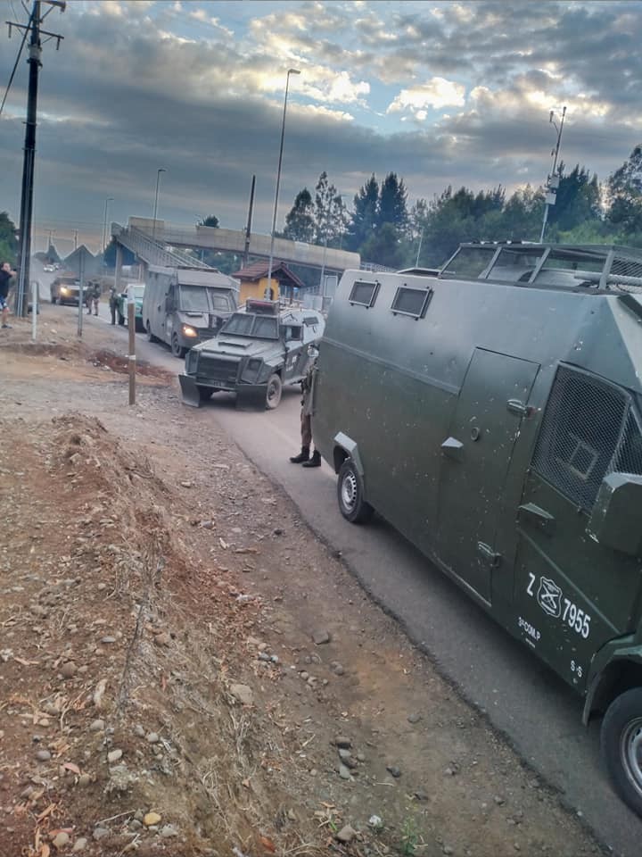Precisamente fue un compañero de trabajo de Luis quien advirtió de lo sucedido a su familia, mientras Carabineros reportó su detención a las 10:00 am. Previamente, a eso de las 07:00 am un enorme contingente del GOPE allanó el Lof Rofue con armamento y vehículos de guerra. “Llegaron solo carros blindados y eran al menos cuatrocientos policías que allanaron tres viviendas. Llegaron en vehículos Mowag, zorrillos, tanquetas, entre otros”, relataron desde la familia del comunero.