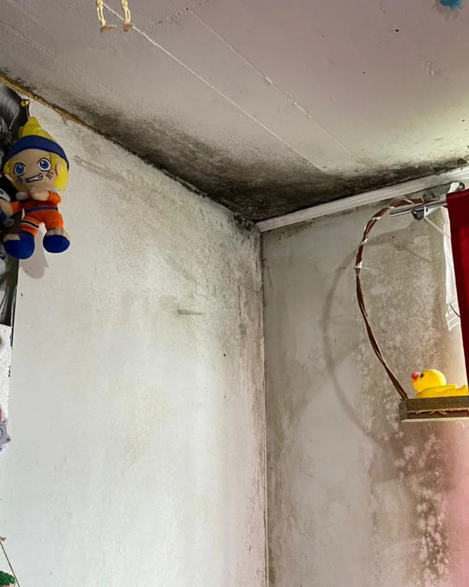 Lo concreto es que en tres años desde entregados sus departamentos, las y los vecinos de Vulla Futuro han ido padeciendo la presencia de hongos en sus paredes, pisos y techos, lo que les ha llegado a enfermar o empeorar patologías ya declaradas.