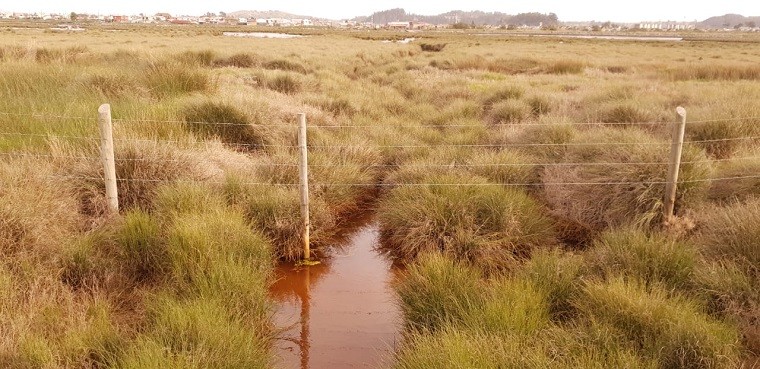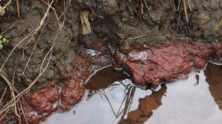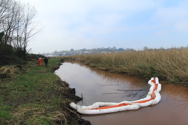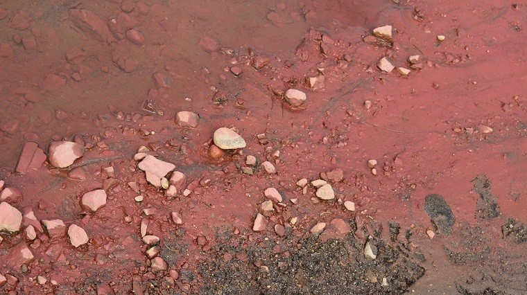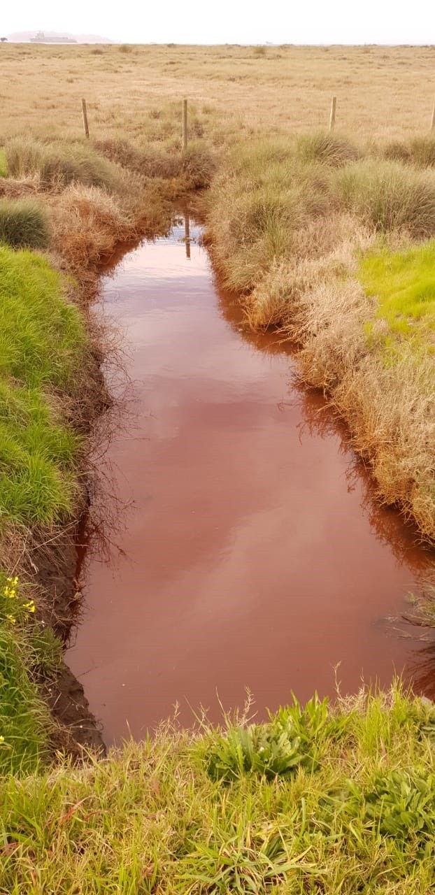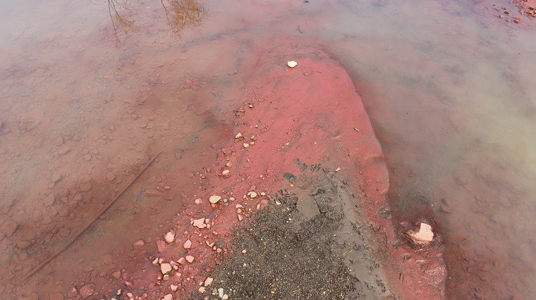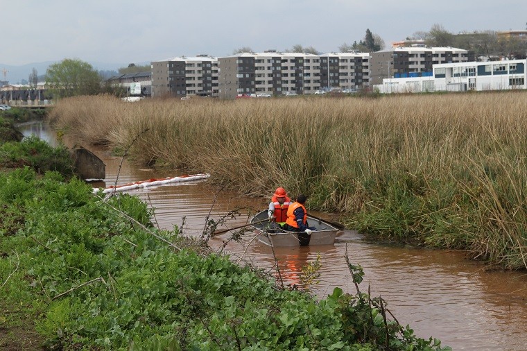 [resumen.cl] El martes 10 de septiembre un camión sufrió un accidente y derramó una gran cantidad de pintura industrial a la altura de la UCSC. La sustancia química llegó hasta los colectores de agua lluvia, tiñendo posteriormente de color rojo al Humedal Paicaví. Revisa a continuación el registro fotográfico que RESUMEN captó en terreno y que demuestran los evidentes daños de los químicos al humedal y su ecosistema: