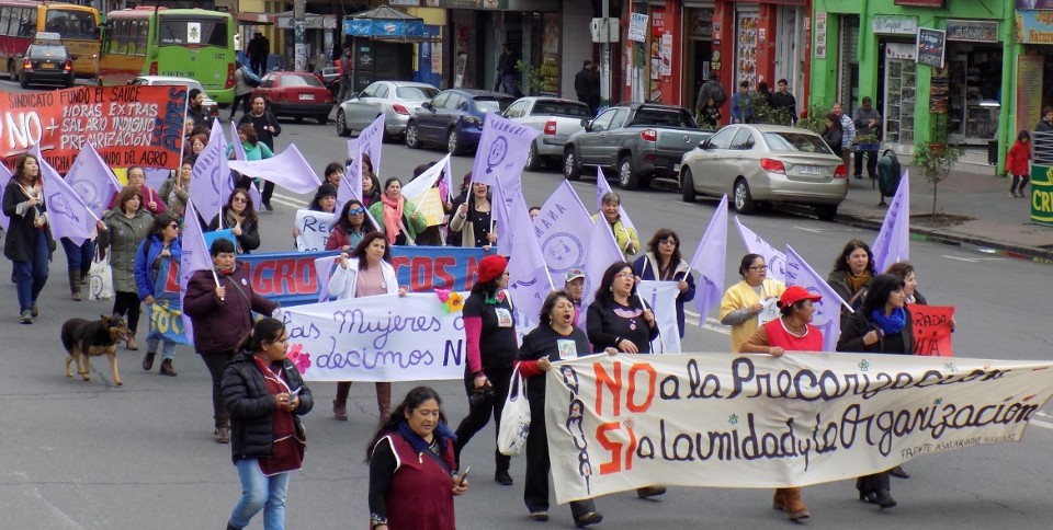 Por Guillermo Correa Camiroaga / resumen.clUna delegación de mujeres trabajadoras del sector agroexportador , provenientes de distintas regiones del país, se congregaron este jueves en la Plaza Sotomayor de Valparaíso y marcharon hasta el Congreso Nacional, en donde entregaron un Petitorio exigiendo sus derechos y rechazando el proyecto de Estatuto laboral agrícola.