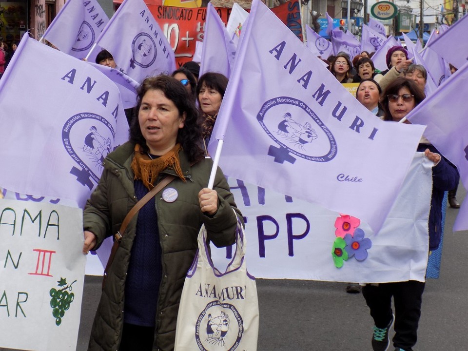 La marcha con las banderas lilas de ANAMURI enarboladas al viento por las mujeres en lucha, continuó adelante por las calles céntricas de Valparaíso coreando otras consignas durante el trayecto: ¡Globalicemos la lucha, globalicemos la esperanza”; “No más contratistas, no más plaguicidas!”; “Manzanas y peras, aquí están las Temporeras”.