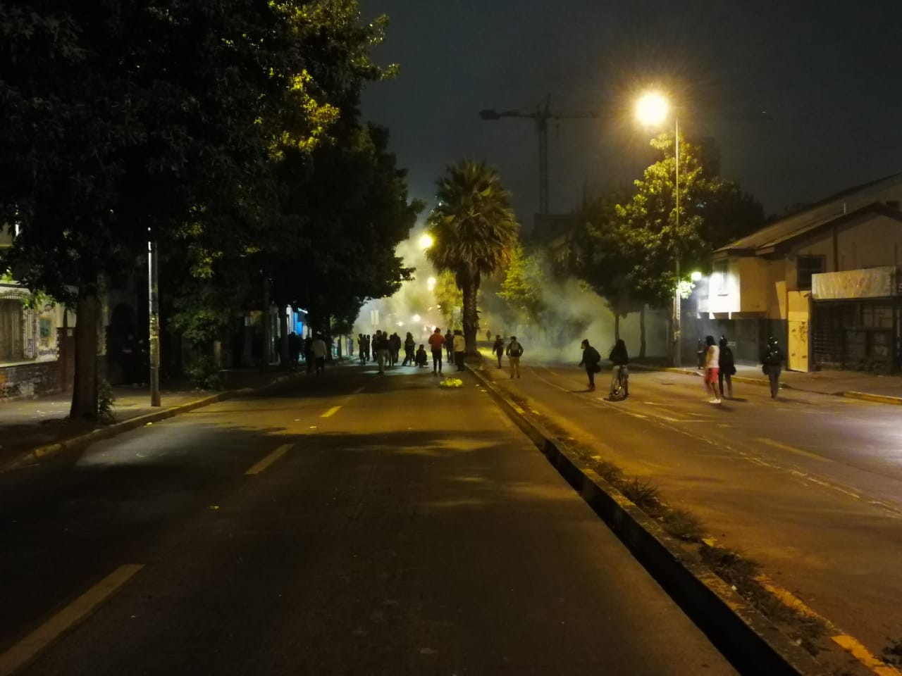 Pasadas las 21 hrs manifestantes intentaban resistir el accionar policial represivo con barricadas hacia Paicavi con Carrera, la diagonal Pedro Aguirre Cerda y la Plaza Perú.