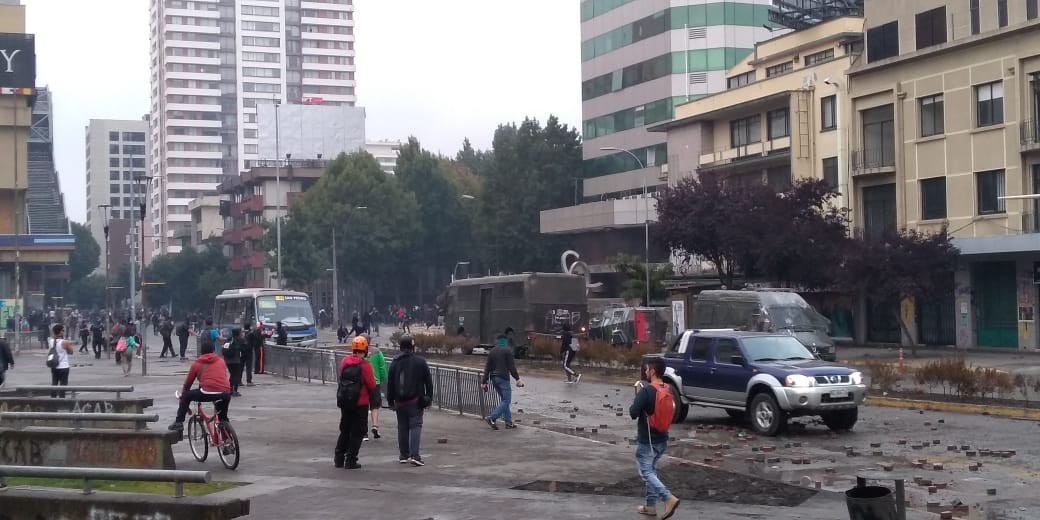 En Concepción, la concurrencia de manifestantes determinó que en diferentes puntos del centro se reunieran para expresar el rechazo a las muestras de despotismo de la clase gobernante y política en su conjunto. Ahí, se realizaron barricadas y se persistió en el uso de la calle como forma de protestar, frente a lo cual carabineros reaccionó con la violencia característica. Junto con ello, Resumen pudo constatar cómo la policía no se ocupó de cortar el tránsito por avenida O'Higgins mientras reprimían a manifestantes quienes respondían con pedradas. Por el riesgo de accidente que esta esta situación propiciaba, un grupo de jóvenes acudió a desviar el tránsito de vehículos particulares y de transporte público por la calle Tucapel y así evitar consecuencias perjudiciales.