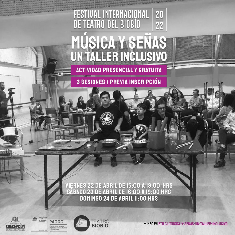 Músicos profesionales y una educadora diferencial de la fundación “Creando Inclusión”, son quienes desarrollan una metodología que se basa en el intercambio de sonidos (altura, timbre, duración e intensidad) con señas asociadas a estos. Se produce una instancia cooperativa entre facilitadores y participantes, donde se propone el desarrollo de momentos musicales. Al ir afianzando la seña, cada participante podrá ejecutar un breve discurso dirigido, muy parecido a jugar a dirigir una orquesta. En el taller pueden participar personas mayores de 8 años y no tiene límite de edad. Las clases serán en el Teatro Biobío, con cupos limitados, y te puedes inscribir desde ya a través de la página web del festival www.ftb.cl
