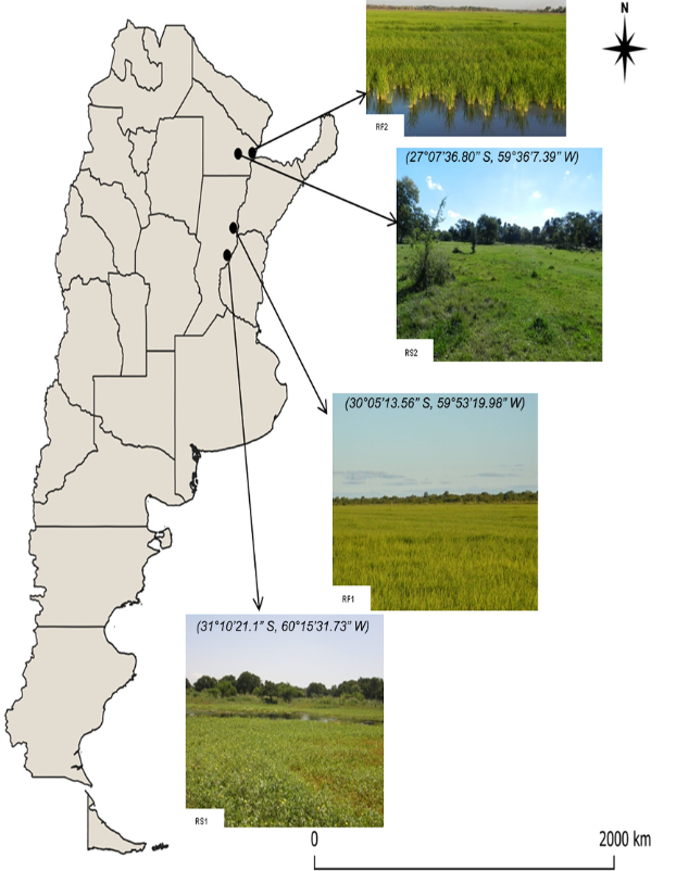 Buscando diferencias entre el arroz y sitios control en Argentina