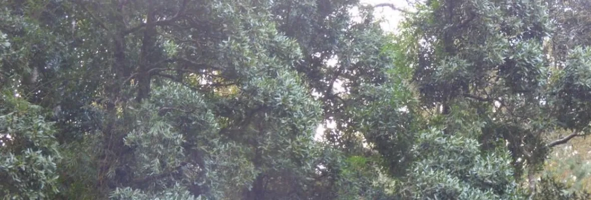 [caption id="attachment_98000" align="alignnone" width="1077"] Ejemplares omitidos de Gomortega keule, claramente identificables a simple vista por su copa característica, cercanos a planta de procesamiento e infraestructura proyectada de accesibilidad. Fuente: informe de la Fundación Keule[/caption]