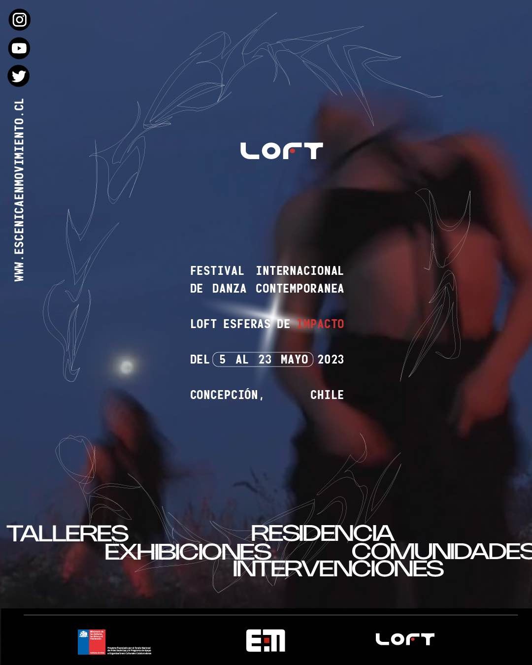 • El Festival Internacional de Danza Contemporánea LOFT Esferas de Impacto 2023, es organizado desde el año 2011 por el Centro Cultural Escénica en Movimiento y está financiado por el Programa de Apoyo a organizaciones Culturales Colaboradoras (PAOCC) y el Fondo de Artes Escénicas, del Ministerio de las Culturas, las Artes y el Patrimonio.