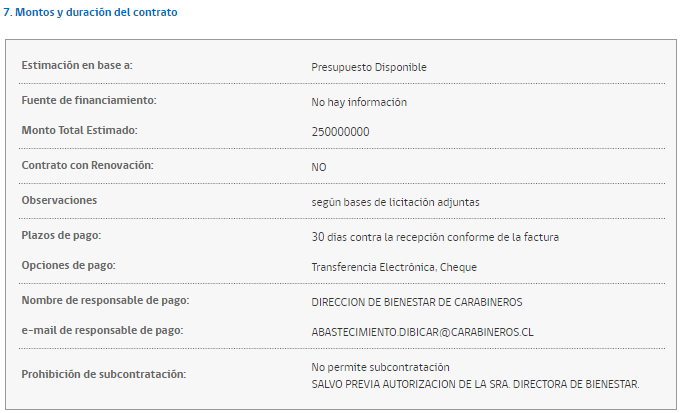 La licitación (539119-33-LR20), revisada por RESUMEN en el sitio de Mercado Público, se encuentra a cargo de la Sección de Abastecimiento y Proyectos de la Dirección de Bienestar de la institución, estableciéndose en la categoría de "igual o superior a 5.000 UTM".