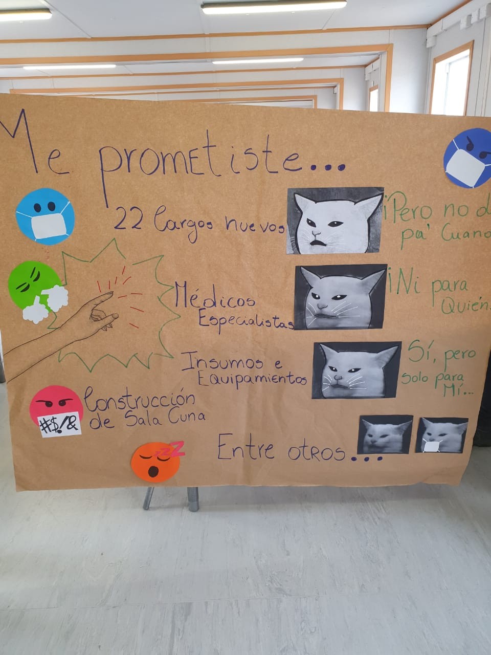 Además agregó que "los funcionarios con contrato a honorarios han sido despedidos y el hospital no cuenta ni si quiera con oxígeno ni insumos para hacer exámenes GES a pacientes crónicos. Esto es gravísimo, los médicos se sumaron al paro ya que no cuentan con las condiciones mínimas necesarias para trabajar y entregar una atención digna a la gente de esta zona de sacrificio".