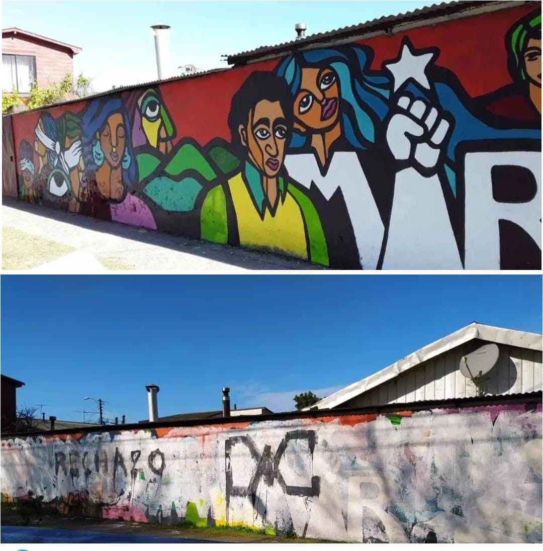 Fue en medio del contexto de la campaña del Rechazo que un grupo de delincuentes vandalizaron el sitio de memoria de Hualpén, valorado por la comunidad, entre ellos el mural.
