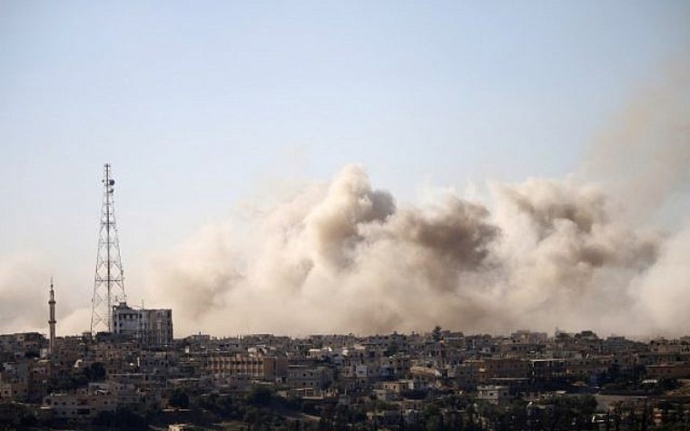 Bombardeos aéreos de las fuerzas gubernamentales sirias en la ciudad de Daraa en junio de 2018. Fuente: Agencia AFP/ Mohamad Abazeed
