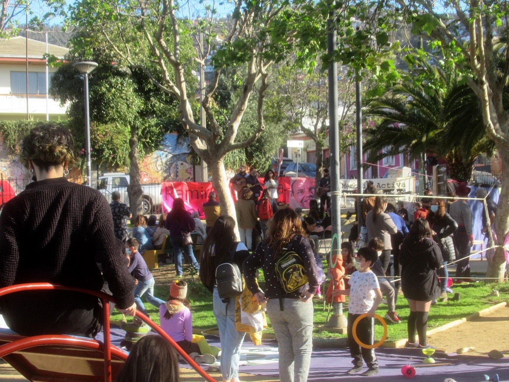 Uno de los momentos más emotivos de esta actividad se vivió cuando a través de los altoparlantes se reprodujo el audio enviado por el Comandante Ramiro desde la cárcel de Rancagua, ya que sus palabras serenas volaron libres por los aires porteños mezclándose con las risas de las niñas y niños que corrían y jugaban llenando de vida y alegría la plaza Yungay. Reproduzco a continuación las palabras de Ramiro: