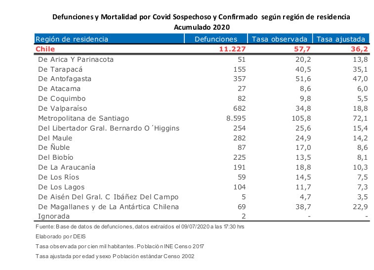 Según el informe, las mayores tasas de incidencia acumulada por cada 100.000 habitantes se encuentran en la Región Metropolitana alcanzando una tasa de 3237,9