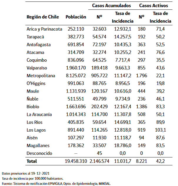 El informe de incidencia y gravedad de casos covid según antecedentes de vacunación reporta que "La incidencia de casos fue de 113,9 casos por cien mil habitantes en el grupo sin protección o con protección incompleta, la incidencia en el grupo con protección completa fue de 65,1 mientras que la incidencia del grupo con dosis de refuerzo mayor a 14 días fue de 12,7"