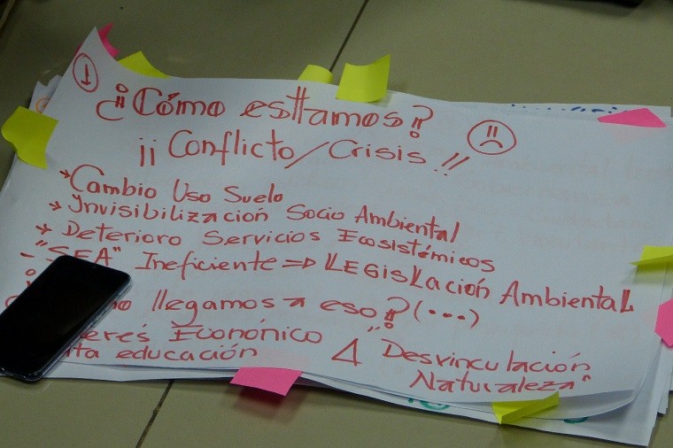 Ademas, se planteó el problema de la falta de investigación y el rol de las universidades que muchas veces actúan a favor del sector privado, siendo cómplices de un sistema que agudiza las problemáticas socioambientales. Al respecto se cuestionó el sistema educativo que uniformiza a la población y aleja a las comunidades de su realidad territorial, se criticó a los instrumentos de participación ciudadana que no propician la democracia ni la gobernanza, porque no son realmente participativos ni vinculantes, así como la burocracia estatal. Se criticó además la visión antropocéntrica de la naturaleza (poner al ser humano en el centro de todo), olvidando que la especie humana es parte de un ecosistema, y sin éste no puede sobrevivir. La crítica se centró en la actual crisis de degradación ambiental que vive el país.
