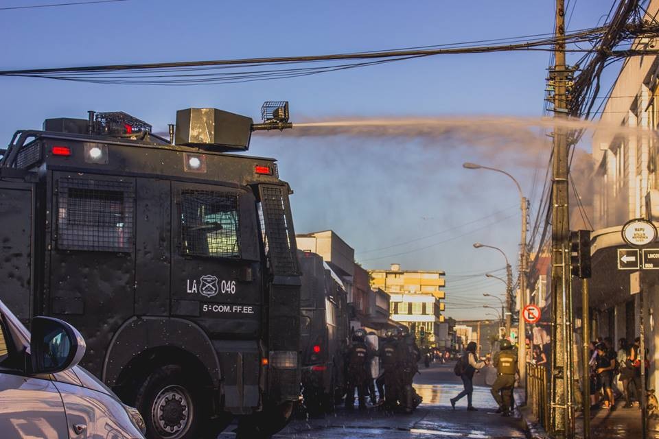La marcha de este viernes avanzó por calle O'Higgins hasta Lincoyán y en la Avenida Los Carrera, fue violentamente reprimida por carros lanza-agua, lanza-gases y piquetes de FF.EE. de carabineros quienes golpearon y detuvieron a 18 manifestantes, 13 mujeres y 5 hombres.