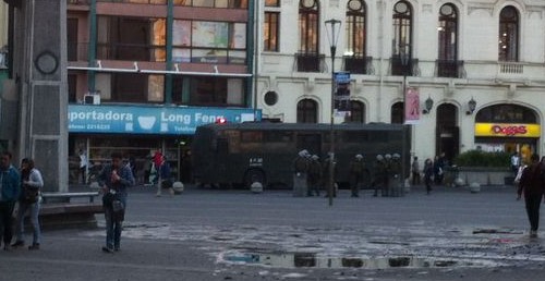 En la arremetida, Carabineros detuvo también con extrema violencia a una reportera de Resumen, quien fue golpeada y ahorcada por los efectivos policiales, tal como se puede ver en el siguiente video: