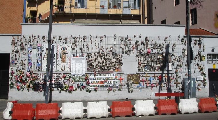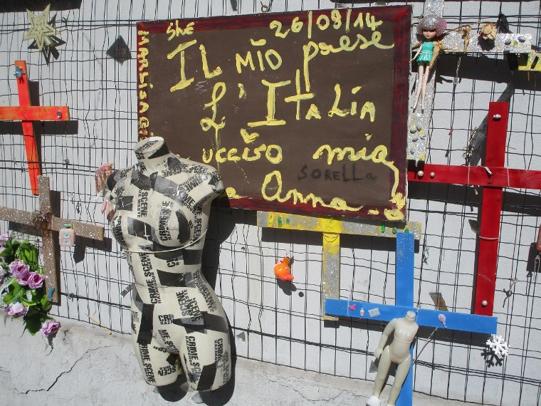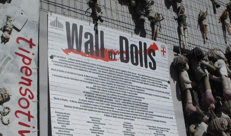 Casualmente me tocó observar en la ciudad de Milán, Italia, el pasado mes de septiembre, una instalación de arte-denuncia callejera alusiva a este tema denominado “El Muro de las Muñecas”, que como explica un afiche colocado en su centro: