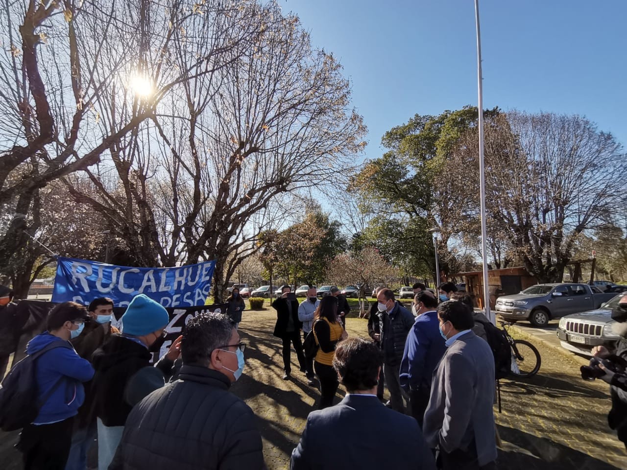 Este martes diversos jóvenes que han participado de la defensa constante del río Biobío ante un nuevo proyecto hidroeléctrico que pretende intervenirlo se presentaron en las afueras de la Municipalidad de Quilaco ante la presencia del gobernador de la región, Rodrigo Díaz (ex DC).