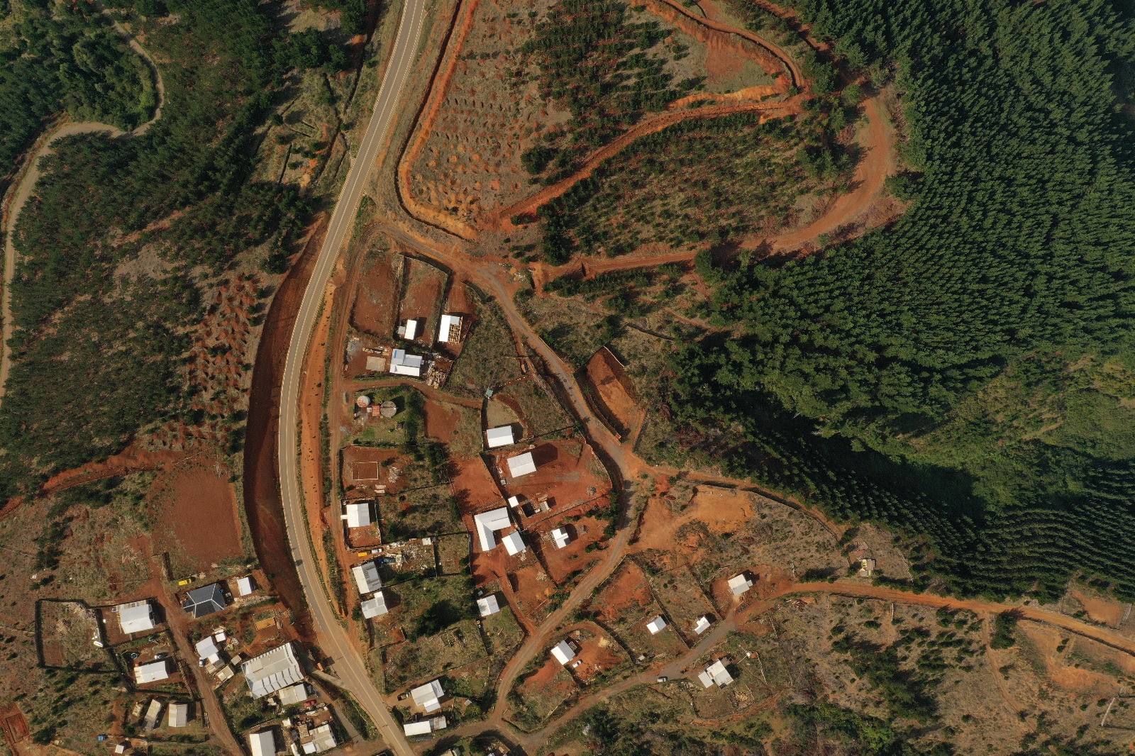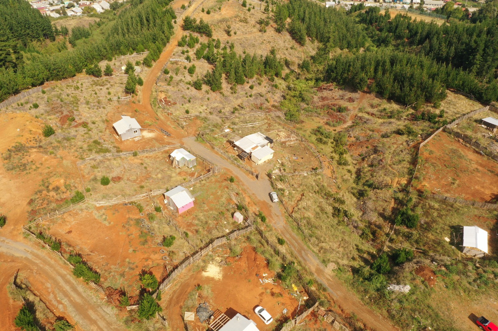 Imágenes de terrenos forestales ocupados por familias que han construido sus viviendas en la periferia de Curanilahue. Créditos: resumen.cl