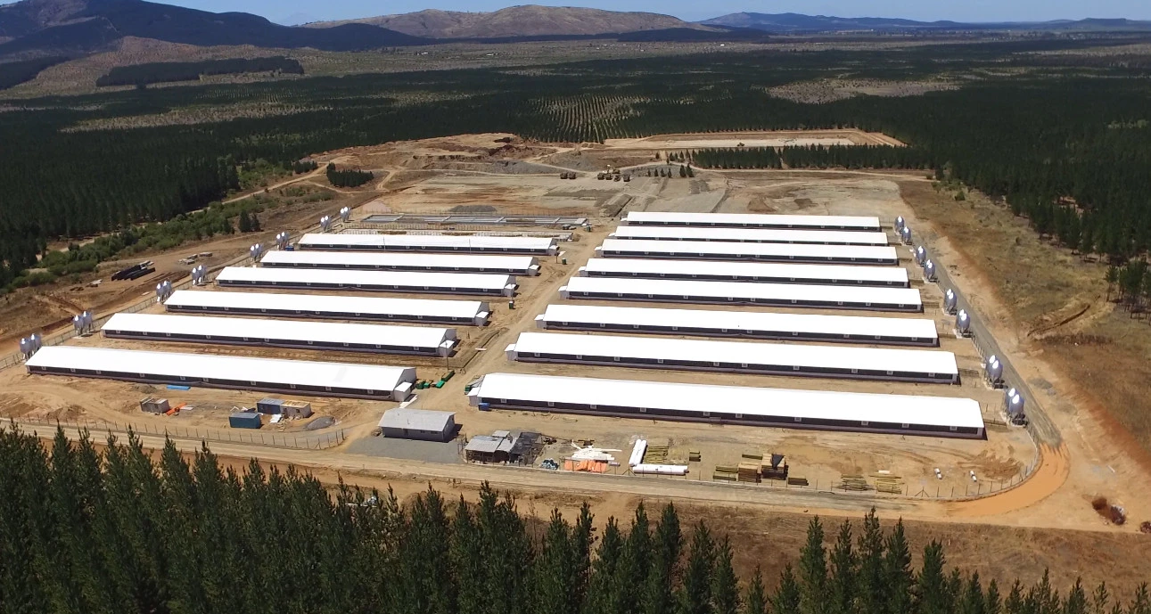 Criadero de cerdos rodeado de plantaciones de pino radiata