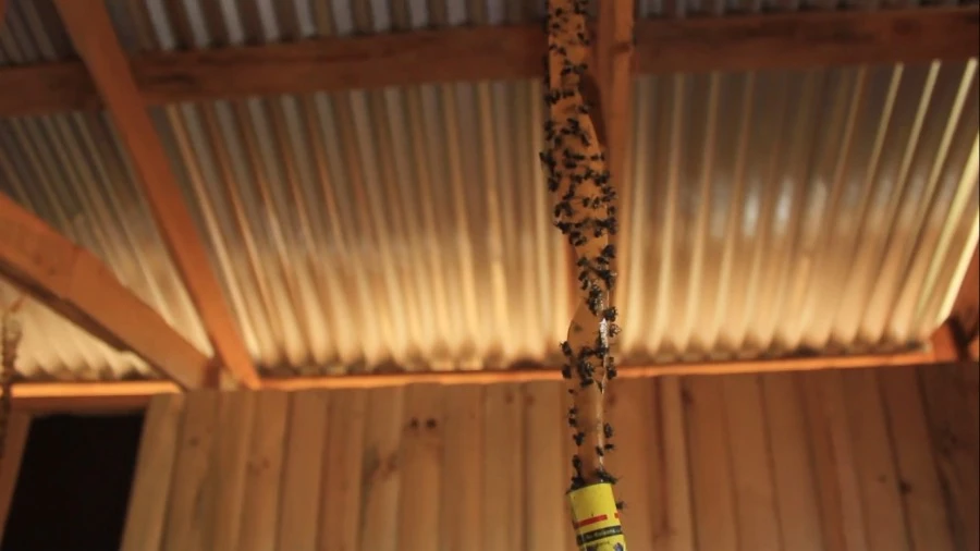 Las casas en torno al criadero de cerdos están llenas de trampas para moscas con las que las familias intentan combatir la plaga