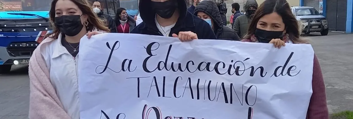 La educación pública en Talcahuano se cae a pedazos. Bajo esta consigna protestaron comunidades educativas de distintos establecimientos de la comuna puerto en repudio a los años de abandono por parte del municipio comandado por el UDI Henry Campos, expresado en escuelas y liceos con serios problemas infraestructurales, de seguridad y de falta de personal docente.