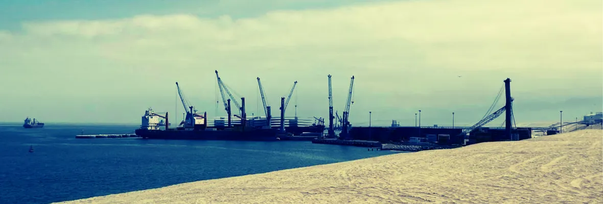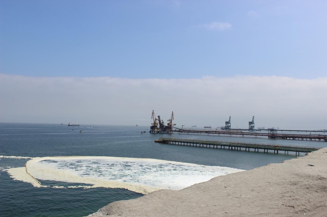 Residuos orgánicos resultado del proceso de desalinización en el puerto industrial de la ciudad de Mejillones. Autoría: Equipo del ODG