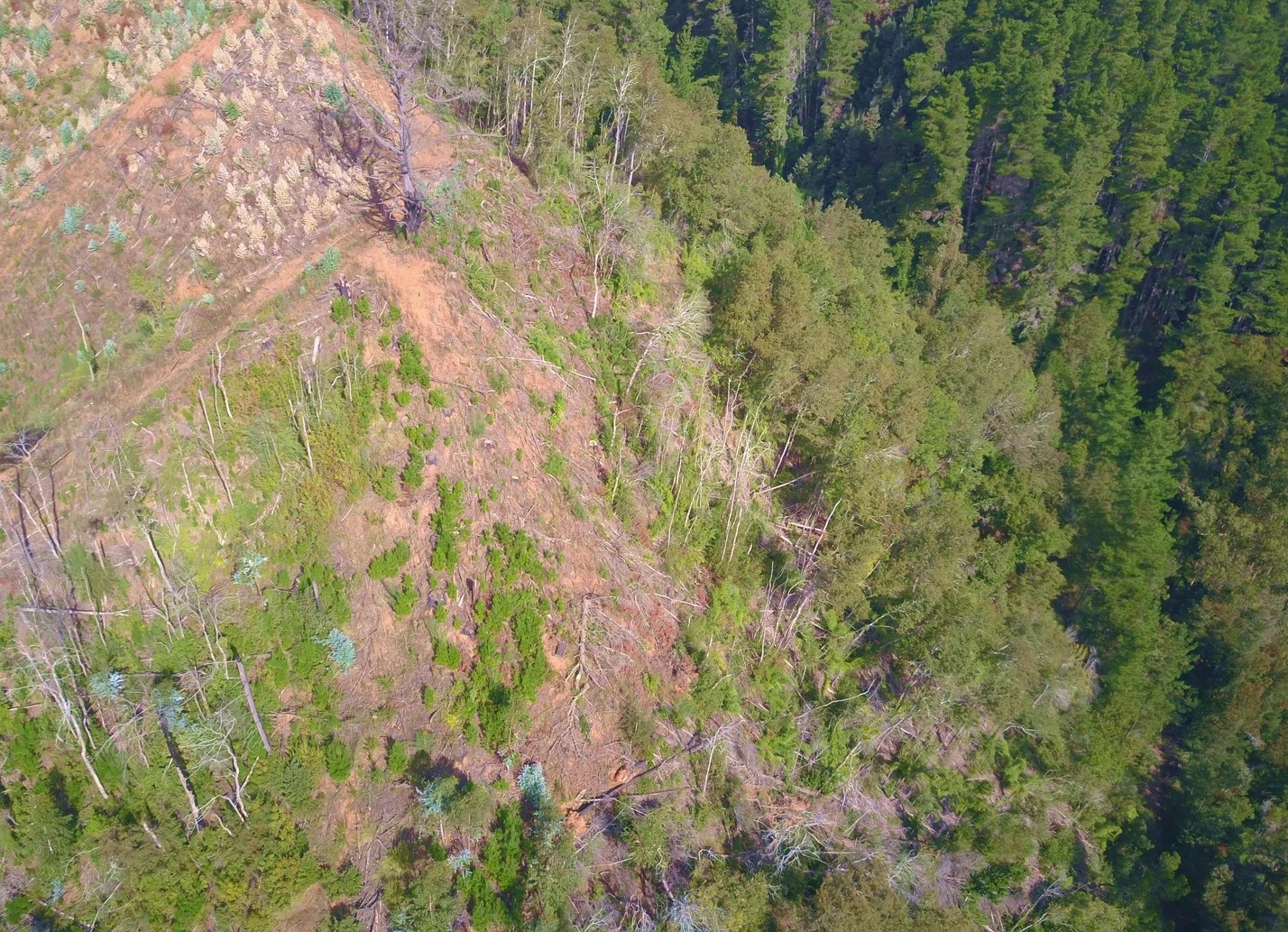 Foto 28: Imagen aérea que muestra el estado de degradación del bosque nativo, rodeado de plantaciones