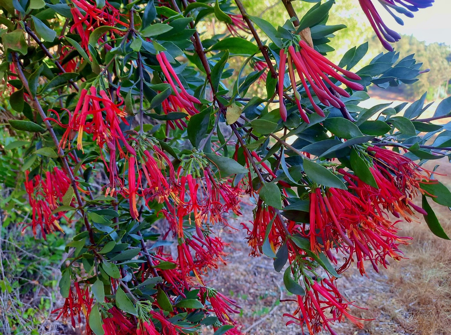 Una de las primeras en llamar la atención debido al revolotear de los picaflores y las llamativas flores fue el Quintral (Tristerix sp.) (ver foto 4), que en esta ocasión se encontraba parasitando al aromo extranjero. En ese instante el yerbatero nos previno que no es el que se debe recolectar, sino los que se encuentren parasitando al Maqui. Estos serían los que tienen el mayor efecto medicinal, es decir el efecto antioxidante, al cual se le atribuyen propiedades anticancerígenas y para tratar afecciones cardiovasculares. (Menegoz & Zapata, 2017) (MHT, 2010).