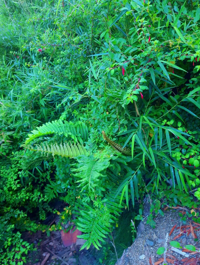 Foto 5: “Menoko” o espacio ecológico y de alta significancia para el pueblo mapuche, se caracteriza por la presencia de agua. En la foto se observa al helecho Costilla de Vaca (Blechnum chilense), Quila (Chusquea quila) y Chilco (Fuchsia magellanica).