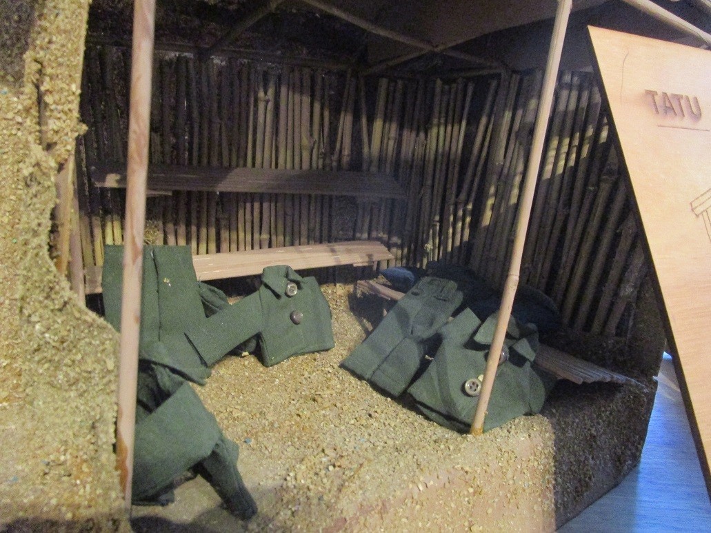 En el libro “Guerrilla en Neltume” aparecen unos diseños esquemáticos de un tatú, pero es necesario hacer volar la imaginación para poder “visualizarlo” en forma tridimensional. Cuando tuve la oportunidad de conocer el tatú ubicado en las cercanías del Campamento Base, durante mi primer viaje a las montañas de Neltume en el año 2011, y escuchar en el monte los testimonios entregados en el lugar por compañeros sobrevivientes de esta tarea del Destacamento Guerrillero Toqui Lautaro relativa a la construcción de varios tatús, relatando la técnica usada para construirlos, la utilidad brindada por estas construcciones subterráneas como depósitos y refugio, además de haber tenido la oportunidad de descender al interior de uno de ellos y conocerlo en terreno, me pareció importante el poder buscar una forma de mostrar en el Museo estas construcciones guerrilleras mediante una pequeña maqueta , un modelo tridimensional y no solo un dibujo del tatú, lo que permitiría tener una visión más realista a los visitantes del Museo que no tienen la posibilidad de participar de las actividades conmemorativas que se realizan en el mes de febrero de cada año y que contempla subir a la montaña para recorrer el Campamento Base y observar en terreno un tatú.