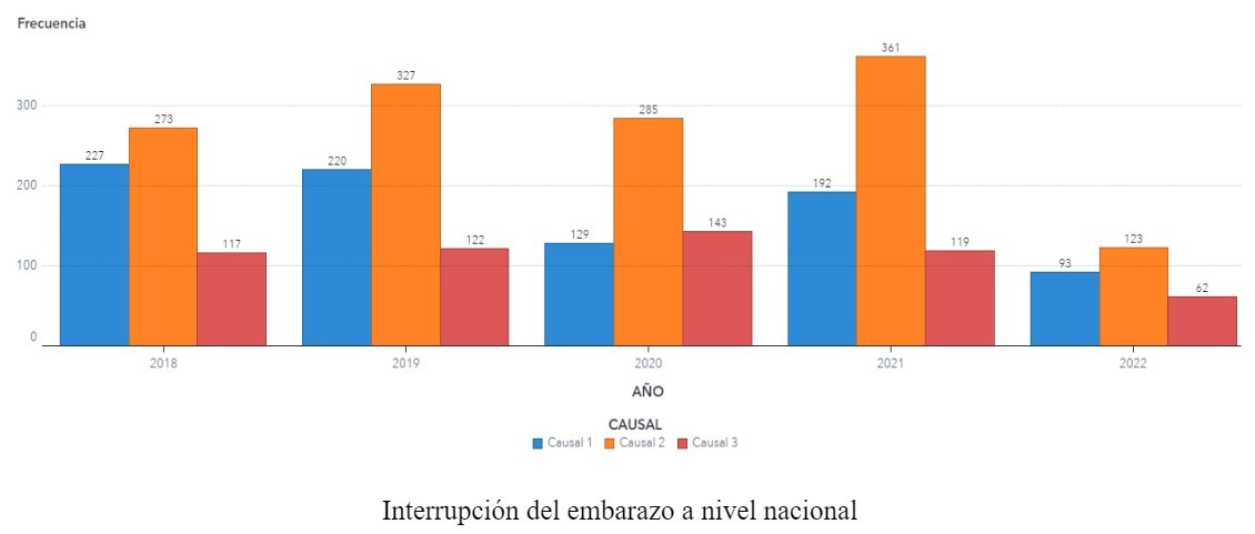 En la actualidad, a nivel nacional, se registran 608 casos constituidos por la causal tres (embarazo resultado de una violación) y 99 casos constituidos de menores de 14 años, 69 niñas resolvieron interrumpir su embarazo y 30 niñas decidieron continuar con él, siendo el 2019 el año en el que se registraron más solicitudes, con 818 casos constituidos, cerrando con 669 abortos.
