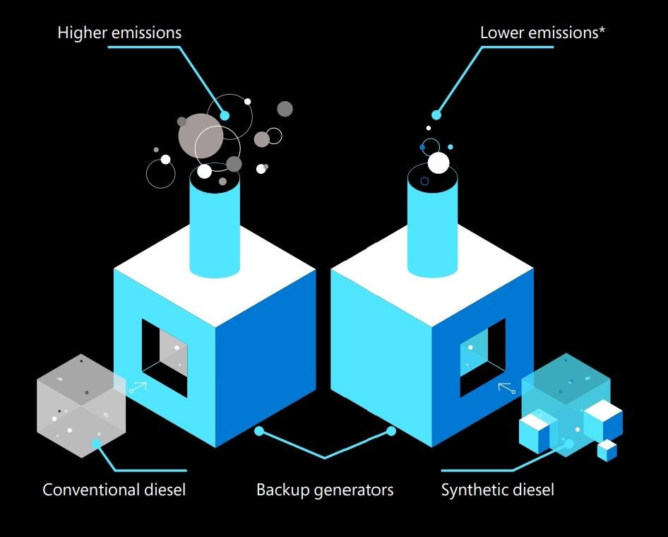 Innovación en sistema de suministro de energía para emergencia por celdas de combustible de hidrógeno y reemplazo por diésel sintético, presentados en la web oficial de Microsoft[7]