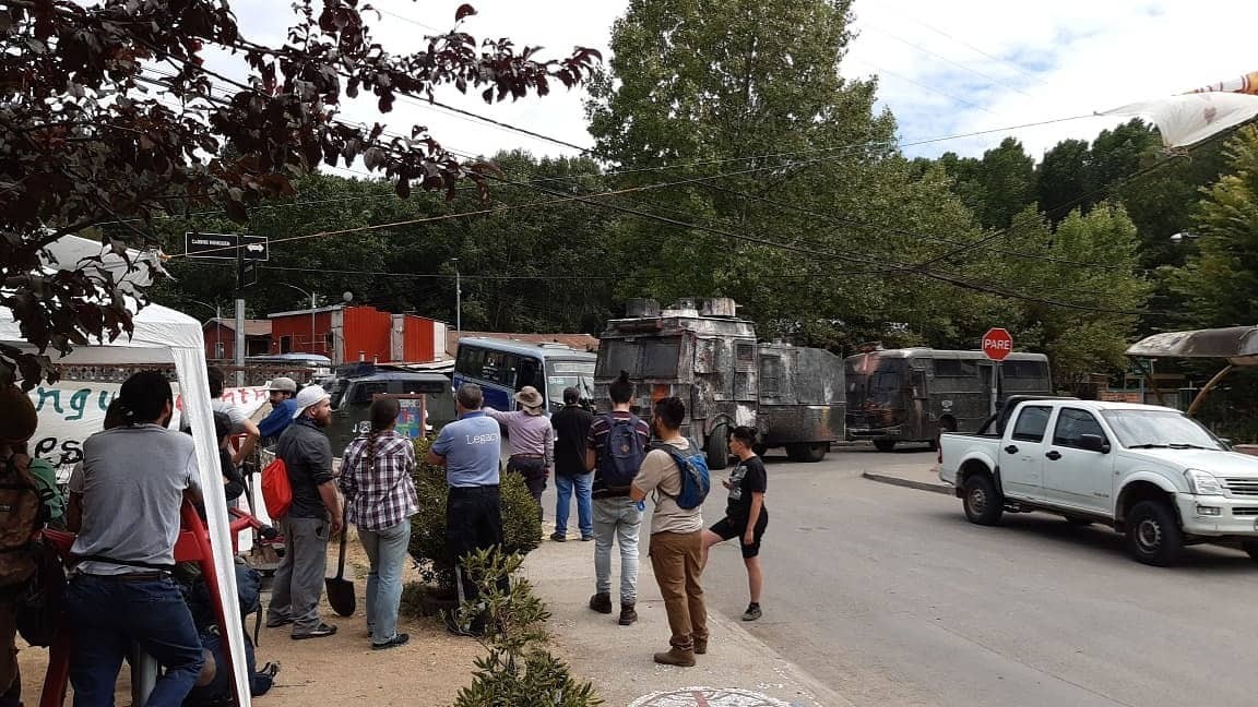 Los incendios forestales también formaron parte de los procesos a los que se enfrentó el pueblo durante el Estallido Social. Desde hace años, el pueblo se organiza a través de brigadas para apoyar la labor de bomberos. En este marco, el 22 de enero de 2020 un grupo de pobladoras/es se encontraba con un punto de acopio en el sector de Nonguén, comuna de Concepción; al lugar, llegaron efectivos de Fuerzas Especiales movilizando, incluso, el “guanaco” al lugar. Carabineros se quedaría en el lugar, sin realizar labor de apoyo, sino que solo de vigilancia al centro de acopio. | Fotografía: Resumen
