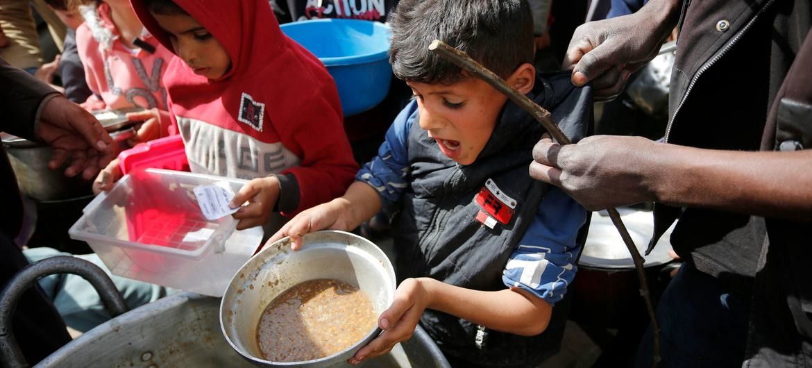 Niños de la Franja de Gaza reciben alimentos. Créditos: © UNRWA