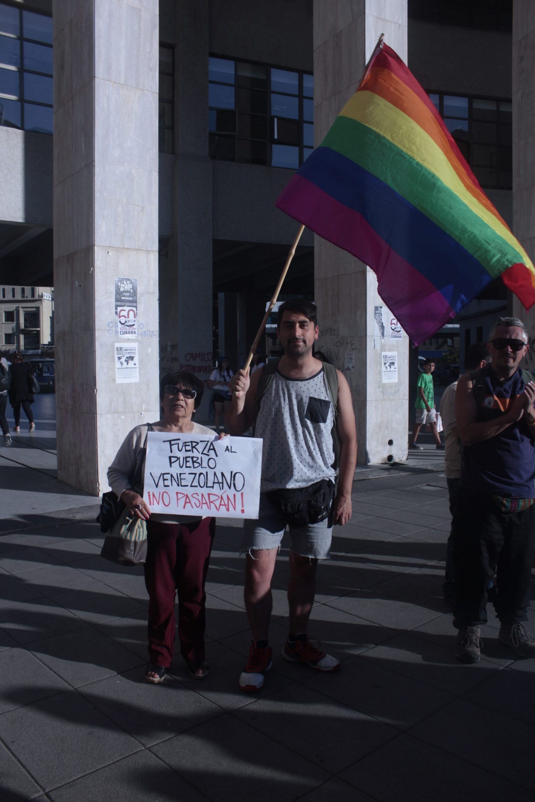 "No pasarán" mensaje de mujer penquista junto a bandera de la diversidad sexual en apoyo al pueblo venezolano y en contra del golpismo