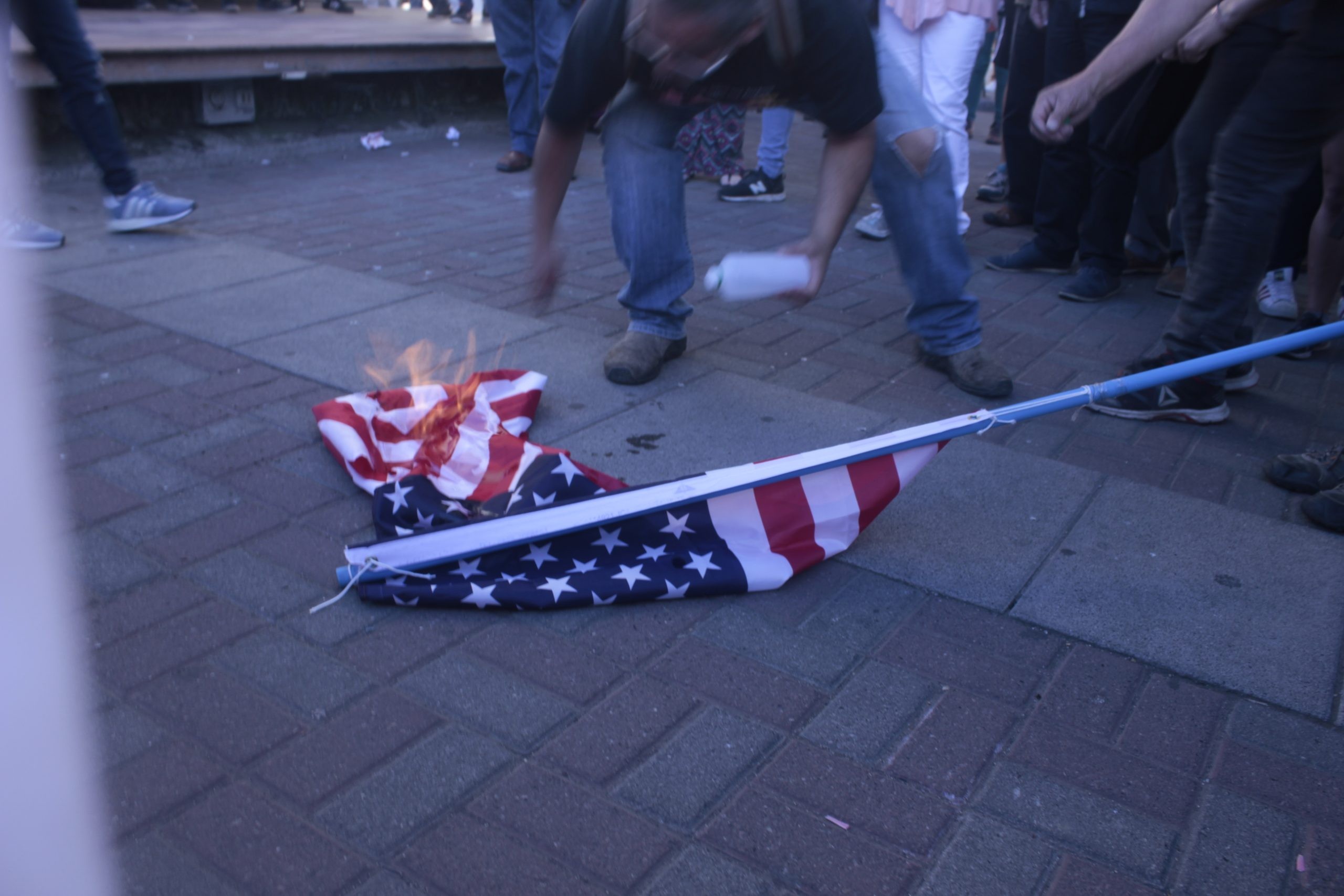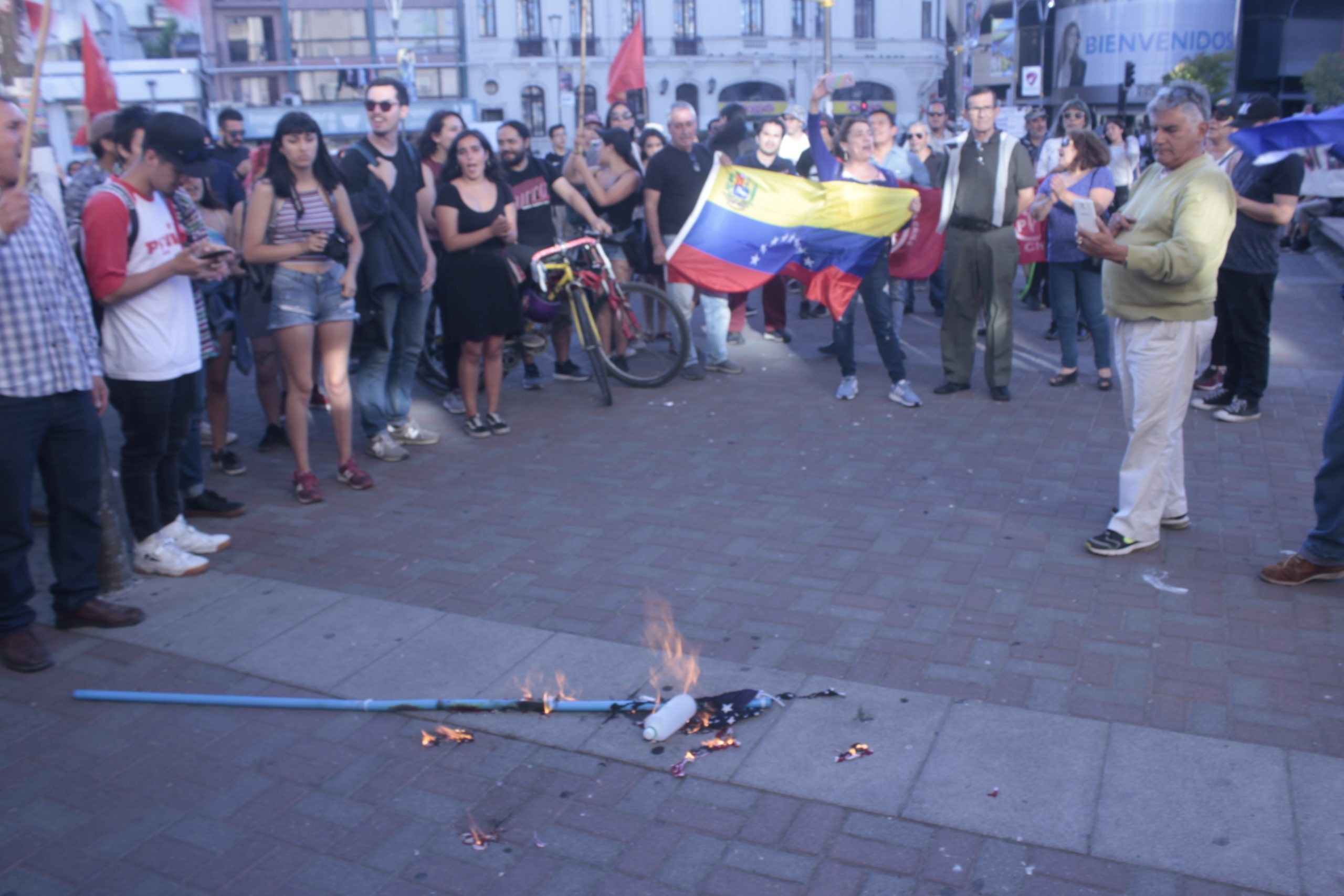 Hombre quemando bandera estadounidense en rechazo a la injerencia en Venezuela | Resumen.cl