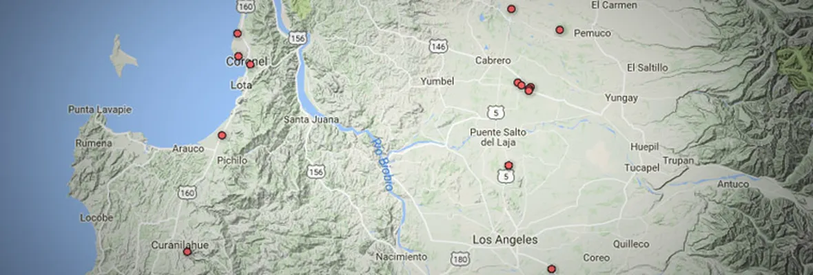 Este mapa registra las centrales termoeléctricas en las regiones del Bio-Bio y Ñuble que funcionan con combustibles fósiles, tales como petróleo diésel, gas natural y carbón. Se registraron tanto las grandes centrales a carbón en la comuna de Coronel y el nuevo polo de construcción de termoeléctricas de gas en torno al Gasoducto del Pacífico en las comunas de Cabrero y Bulnes. Además, se registraron las centrales termoeléctricas pertenecientes a la categorías de “Pequeños Medios de Generación (PMG)” y “Pequeños Medios de Generación Distribuida" (PMGD) en la Región del Ñuble (San Gregorio) y en la Provincia de Arauco (Curanilahue, Contulmo, Cañete, Lebu y Tirúa).