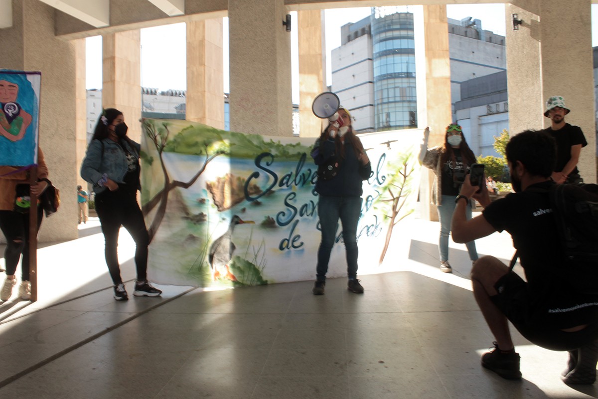 En las afueras de las oficinas de la secretaria regional ministarial el integrante de «No al Puente Industrial», Juan Pablo Toledo, señaló que «La situación del humedal es crítica. Los flamencos, los zarapitos, las gaviotas tuvieron que irse de ahí». «Venimos acá por segunda vez para que se inicie un proceso de plan de manejo que el seremi, Mario Delannays, no quiere iniciar para garantizar sus funciones ecosistémicas y que sea un santuario sano».