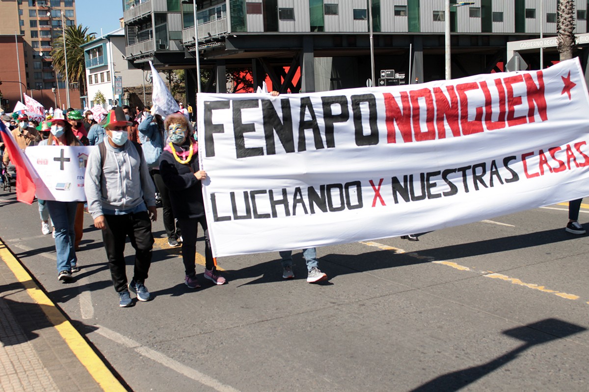 [resumen.cl] Cientos de pobladoras y pobladores agrupados en la Fenapo marcharon por las calles de Concepción este mediodía por el derecho a una vivienda digna y como una forma de despedir a Piñera y "a todos los que gobiernen para los empresarios".