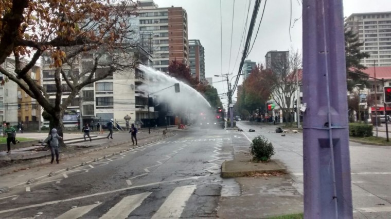 Posteriormente la marcha llegó a la Plaza Perú y las inmediaciones de la Universidad de Concepción. Grupos de manifestantes intentaron armar barricadas y fueron reprimidos por un gran contingente policial compuesto por cerca de 100 efectivos policiales, 2 carros lanza- agua, 2 carros lanza gases, 2 buses y grupos de caballería.