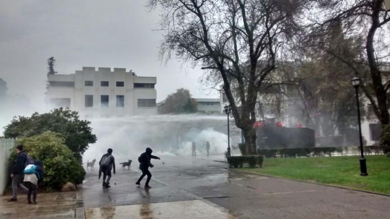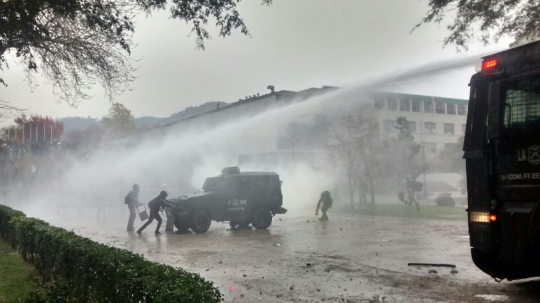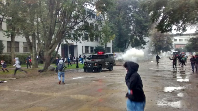 Las escaramuzas se trasladaron hacia el interior de la Universidad luego que Carabineros se apostara por distintos accesos a la casa de estudios. Persecuciones contra manifestantes se registraron en dirección hacia la Casa del Deporte y por calle Janequeo, mientras la mayor parte de los y las manifestantes se mantuvieron protestando al interior del campus, entre las facultades de Ciencias Naturales y Oceanográficas (La Ballena), la Facultad de Química y Farmacia y el Foro. Carros y piquetes ingresaron al campus arrojando lacrimógenas a manifestantes y transeúntes.