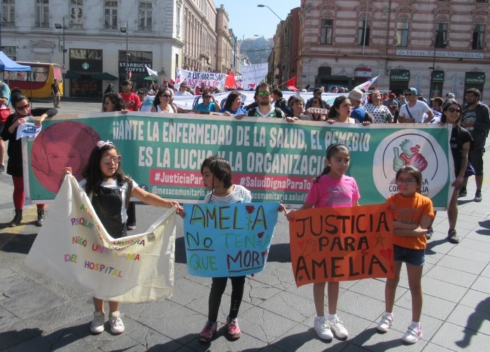 Encabezando esta movilización se encontraba la familia de Amelia Salazar - una pequeña de 1 año y nueve meses, quien falleció en el mes de julio de 2018 esperando una cama de la Unidad de Cuidados Intensivos (UCI infantil) del Hospital Carlos Van Buren - acompañados por vecinos y vecinas del Cerro Las Cañas, un sector popular de Valparaíso, en donde los padres de Amelia son dirigentes del Centro Comunitario. Esta dolorosa situación es una muestra indesmentible de la difícil condición por la que atraviesa la deteriorada salud pública en Chile.