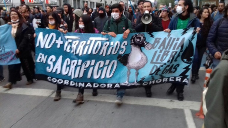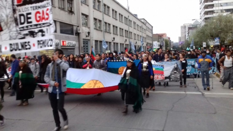 [resumen.cl] Este jueves se realizó una nueva marcha contra los proyectos de instalación de terminales de gas importado por vía marítima, conexiones y proyectos de grandes centrales termoeléctricas en el Biobío y Ñuble. Manifestantes y participantes de distintas agrupaciones socioambientales marcharon por el centro de la ciudad denunciando los planes estatales y empresariales de potenciar el sector energético e industrial pesado y sus consiguientes impactos ambientales a nivel local y global.