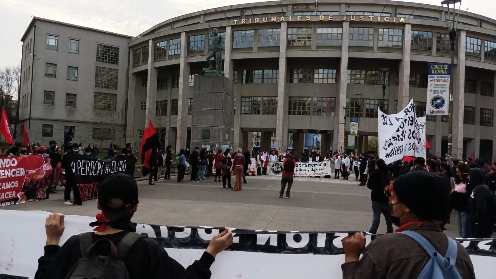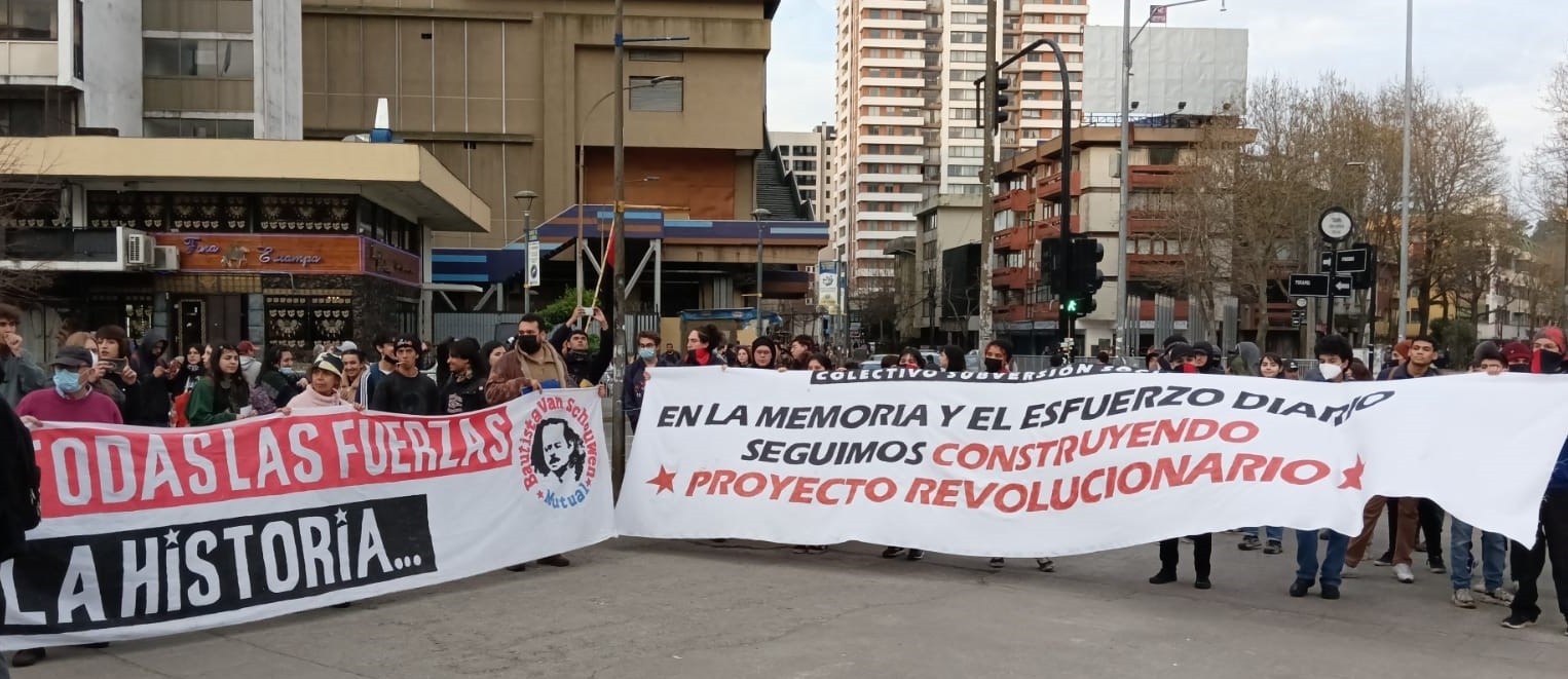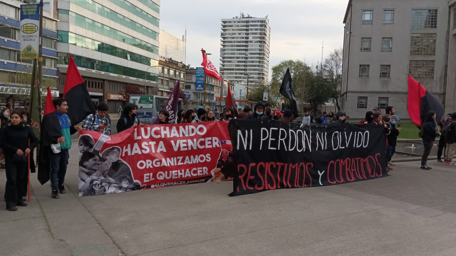 Ayer lunes 12 de septiembre, se efectuó una marcha desde la plaza Perú en Concepción, que agrupó principalmente a estudiantes, pero también a organizaciones de Derechos Humanos, realizando un recorrido por diversos puntos del centro de la ciudad: Palacio de Tribunales, Dirección de Carabineros y Ejercito, Catedral, Gobierno Regional, funando a estas instituciones por su responsabilidad en la sistemática violación a los Derechos Humanos durante la dictadura cívico militar.