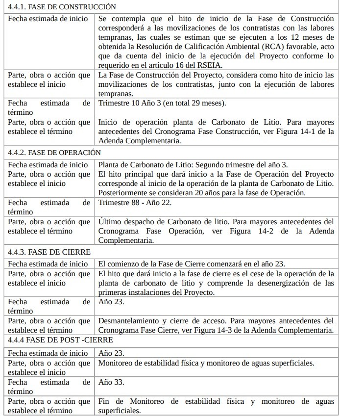 Cronograma de Producción de Sales Maricunga | Resolución Exenta N°0174, p. 19.